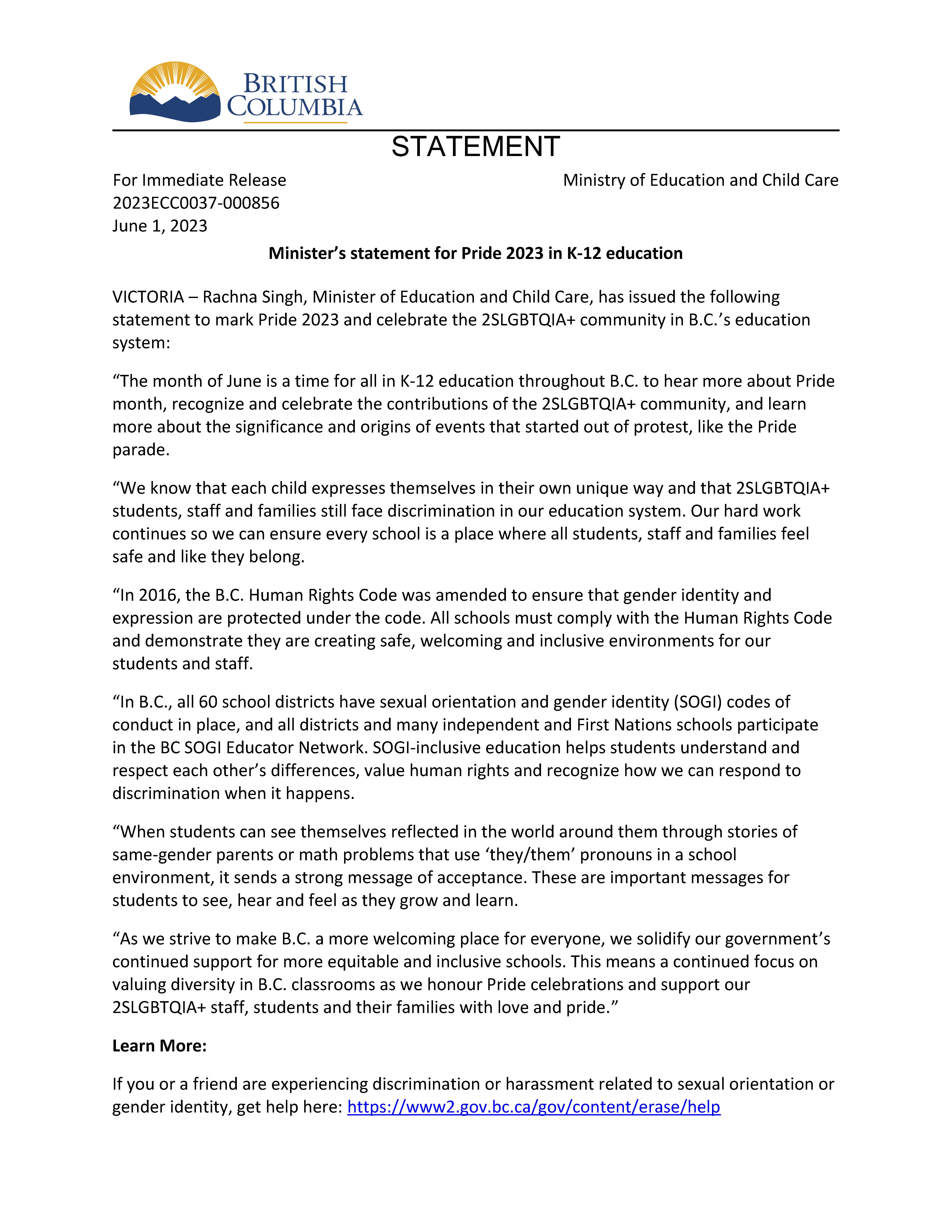 To all of our 2SLGBTQIA+ students, parents, staff members and neighbours: we support you and your right to be your most authentic selves and to love who you want to love, every day!